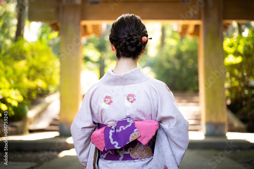 © Monet, Fototapeta premium 門前に立つ着物を着た美しい日本人女性