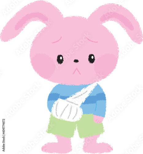 © mamiko, Naklejka premium 骨折して腕に包帯を巻いているうさぎの男の子イラスト