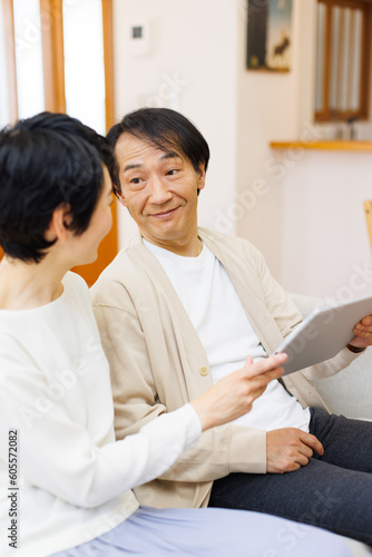 Fototapeta premium 自宅でデジタルタブレットを備えた成熟した日本のカップル