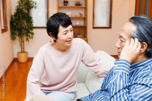 Fototapeta premium 家でめまいがする成熟した日本人