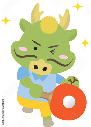 Fototapeta premium 楽しそうに卓球をプレイする辰年の龍