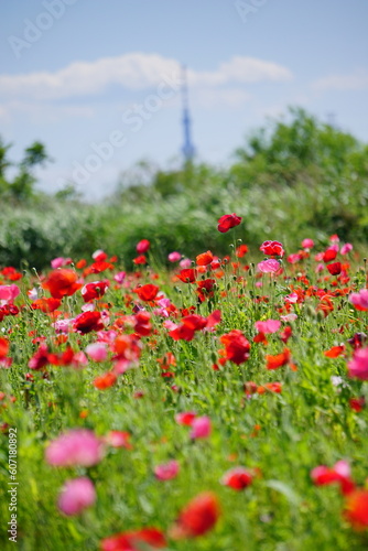 © yanpon, Fototapeta premium 江戸川河川敷のポピー畑 江戸川松戸フラワーライン