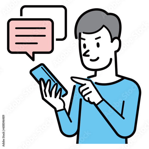 © あんころもち(ankomando), Obraz premium スマホでトークする男性のイラスト