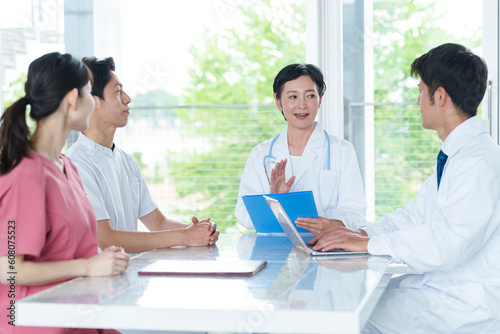 © taka, Obraz premium 打ち合わせをを行う医療チーム