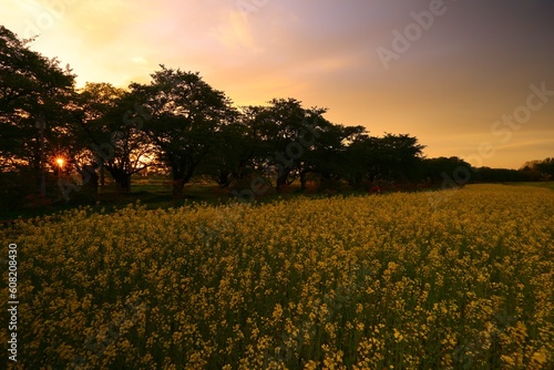 © yspbqh14, Obraz premium 夕焼けの菜の花畑