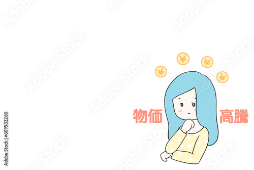 © mo to, Obraz premium 値上げラッシュに悩む主婦 グラフ 価格高騰 物価高 イラスト