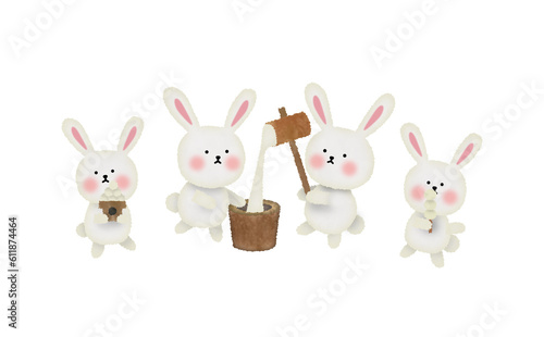 Fototapeta premium 餅つきをするうさぎのイラスト