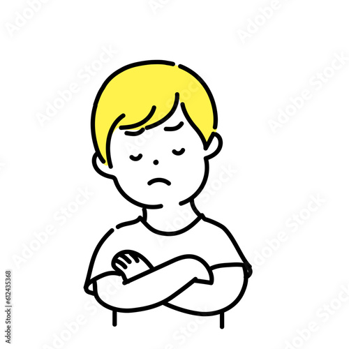 © studio uguisu, Obraz premium かわいい人物のイラストシリーズ _ カジュアルな服装の男性_ 考える