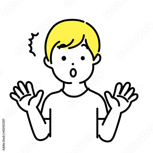 © studio uguisu, Obraz premium かわいい人物のイラストシリーズ _ カジュアルな男性_ 驚く
