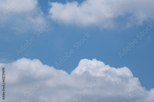 Obraz premium 夏、梅雨明け、さわやかな晴天の青空と折り重なったふわふわの積乱雲の背景 夏休み・天気・アウトドア・旅行・バカンスのイメージ