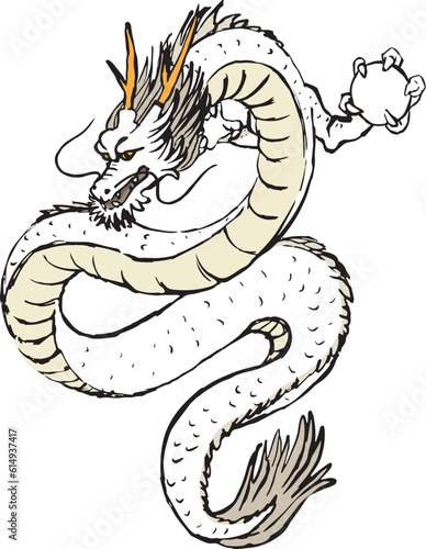 Fototapeta premium 龍の手描きイラスト 辰 竜 和風 水墨画