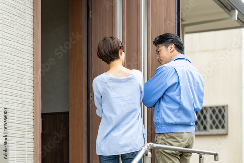 Fototapeta premium 家・玄関・訪問販売・出張サービス・男性・女性