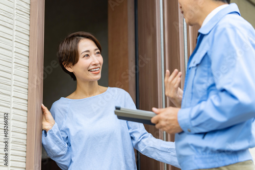 Fototapeta premium 家・玄関・訪問販売・出張サービス・男性・女性