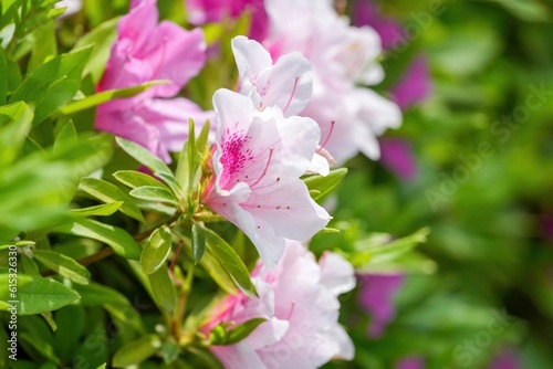 Fototapeta premium ひっそりと咲く満開のピンクのツツジ