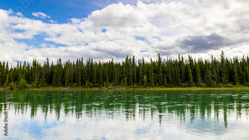 Obraz premium カナダ ユーコン準州 タキーニ川とタイガの森