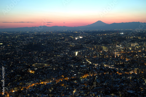 Obraz premium 富士山と街並み