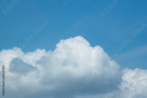 Obraz premium 春・初夏・夏の晴天さわやかな青空、ふわふわの入道雲の背景 アウトドア・キャンプ・ゴールデンウィーク・夏休み・祝日のイメージ