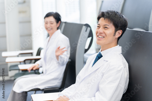 Obraz premium 学会の発表を聞く医者