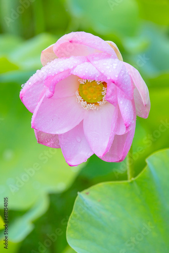 Obraz premium 雨上がりに綺麗に咲いたピンク色の蓮の花