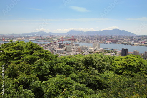 © shochanksd, Obraz premium 若松の高塔山展望台から見た若戸大橋と洞海湾