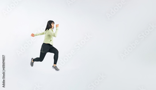 Fototapeta premium ジャンプするスポーツウェアを着た女性