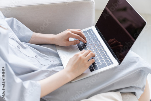 Fototapeta premium 部屋でパソコンを見る女性 手元