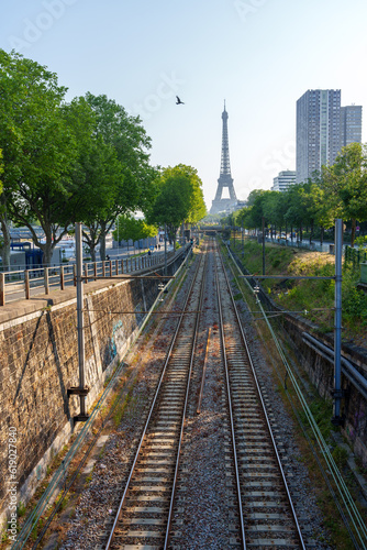 © sunrising4725, Fototapeta premium エッフェル塔へと向かうパリの線路