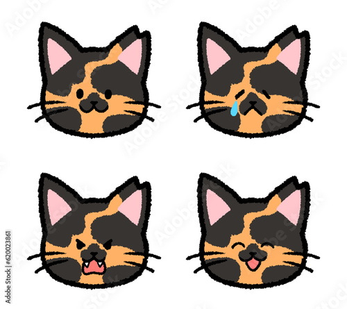 Obraz premium 耳カットされた雌のサビ猫の表情セット