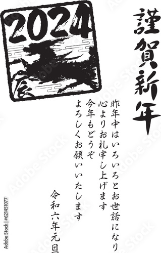 Obraz premium 2024年辰年の年賀状デザイン
