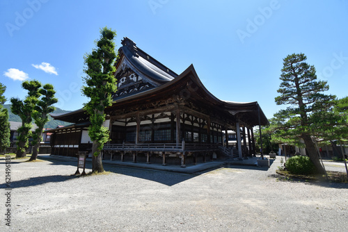 © Akio Mukunoki, Fototapeta premium 飛騨古川の三寺参りのお寺の1つで飛騨最大の木造建築物の本光寺の本堂