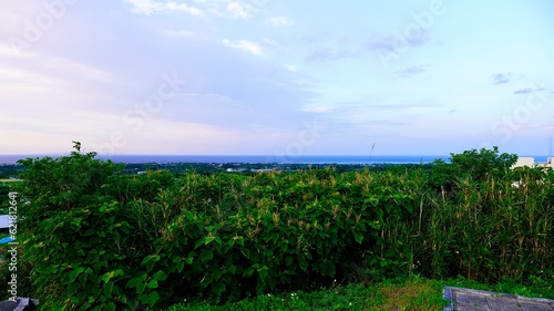 Obraz premium 鹿児島県奄美群島与論島の舵引きの丘(ハジピキパンタ)から見える夕焼け
