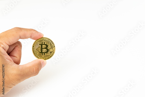 Fototapeta premium 白背景にビットコインを持つ手