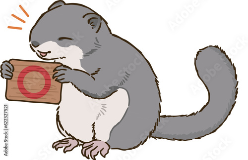 Obraz premium 丸マークを描いた看板を持つエゾモモンガ