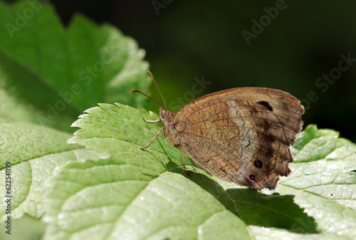 © SAIGLOBALNT, Fototapeta premium 草葉の上でポーズするジャノメチョウ(マクロレンズ使用・ストロボ+自然光・接写写真)