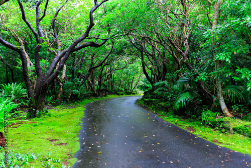 © yuuki, Fototapeta premium 八丈植物公園の森の中の遊歩道