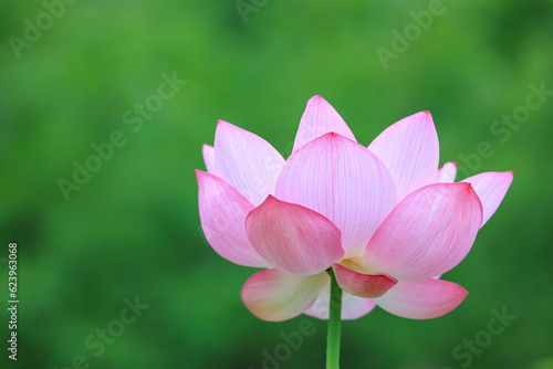 Fototapeta premium 夏の早朝にピンク色の大きな花を咲かせる蓮