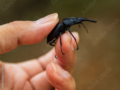 Fototapeta premium ノコギリクワガタくんをゲット!!
