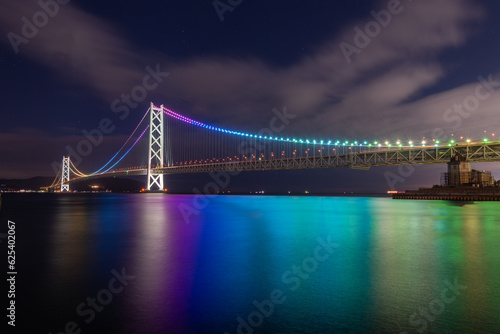 Fototapeta premium レインボーでライトアップの明石海峡大橋