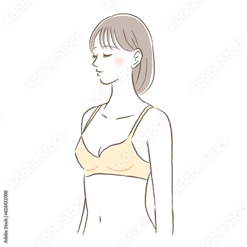 Fototapeta premium 胸のサイズが小さめのブラジャー姿の若い女性のイラスト