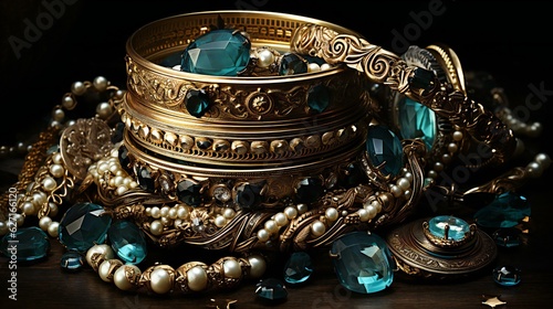 © shin project, Obraz premium 海賊が集めたような宝石の山
