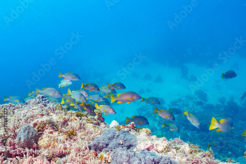 Obraz premium 南伊豆ヒリゾ浜の鮮やかなフエダイの群れ