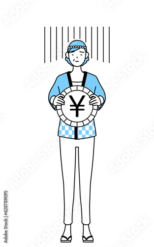 Fototapeta premium 為替差損や円安のイメージ、夏祭りの法被を着たシニア女性