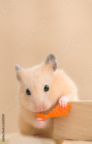 © stockfoto, Fototapeta premium 人参を食べるキンクマハムスター