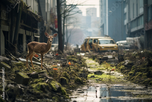 © Taroon, Obraz premium 苔むした廃墟と鹿