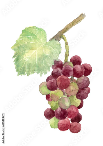 © yuu, Fototapeta premium 水彩で描いた色づき始めた葡萄のイラスト 白バック 透過背景