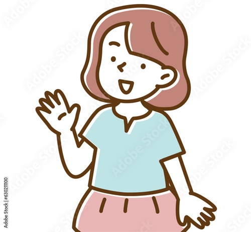 Fototapeta premium 片手を上げて微笑む一人の女の子