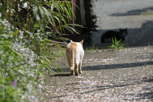 © miyamotokei, Fototapeta premium 桜の散る道を行く仔猫