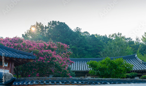 Obraz premium 배롱나무 꽃이 아름답게 핀 나주 도래마을 공원 풍경