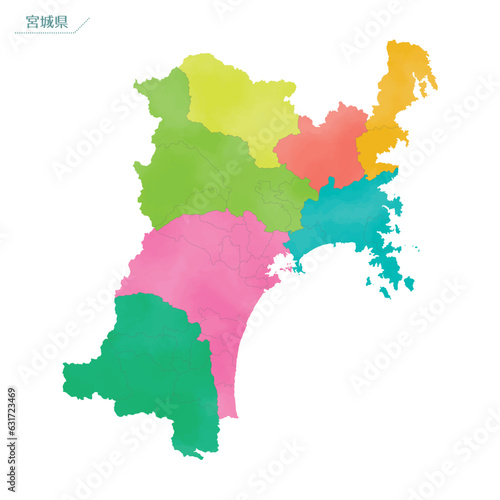 © ころころ, Fototapeta premium 水彩風の地図 宮城県