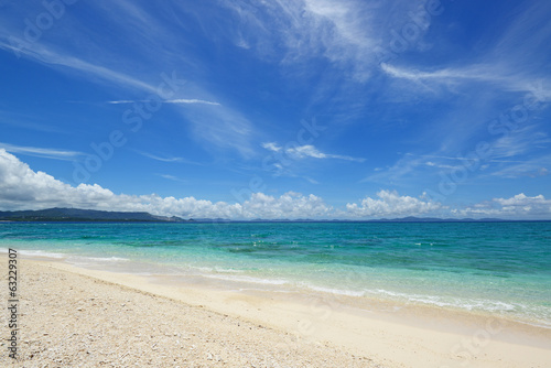 Fototapeta premium 南国沖縄の綺麗な珊瑚の海と夏空